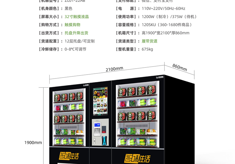 訂購標(biāo)配:(0-8°c)制冷機(jī)組+數(shù)碼電子標(biāo)簽+智能防盜門+智能電動取貨門+22寸液晶屏+觸摸屏+TEI45主機(jī)+微信及支付寶支付